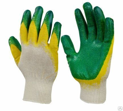 Перчатки трикотажные с двойным латексным покрытием ладони. Обладают высокой износостойкостью, не промокают при работе с влажными материалами. Перчатки надежно предохраняют руки от механических повреждений острыми углами, арматурой, стеклом.
