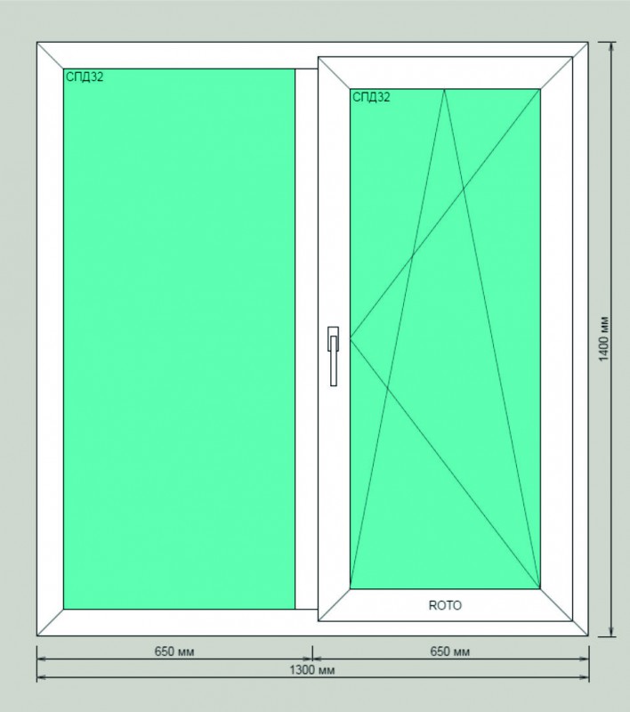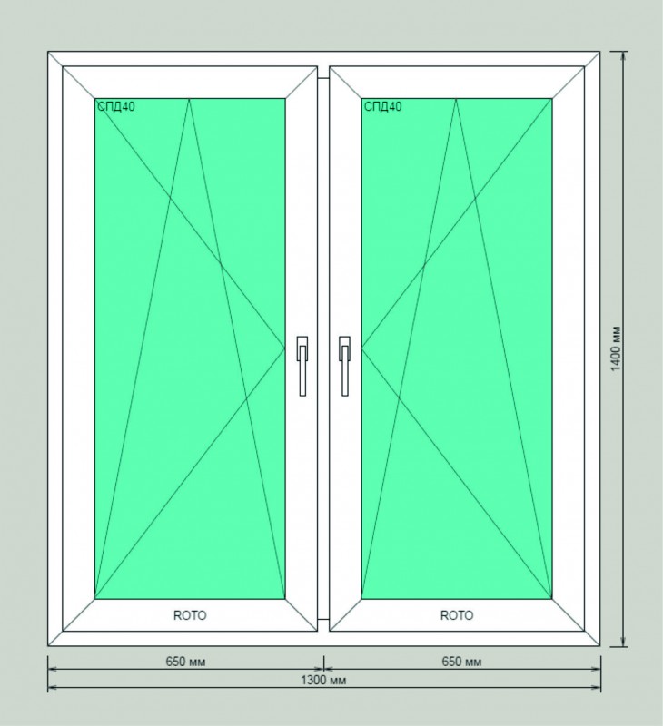 ![]() | 1300х1400 | Окно двустворчатое, с двумя поворотно-откидными створками. | 17 300 |