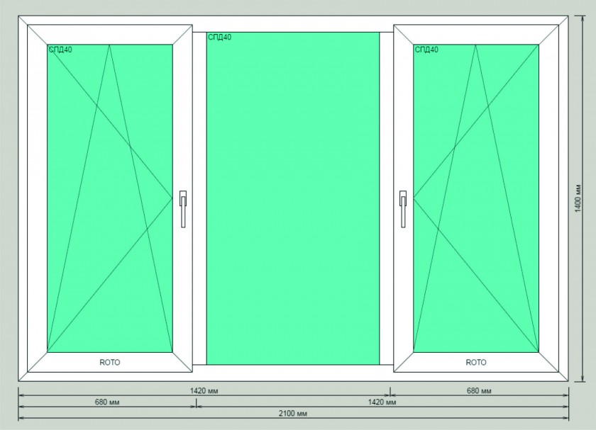 ![]() | 2100х1400 | Окно трехстворчатое, с двумя поворотно-откидными створками. | 22 500 |