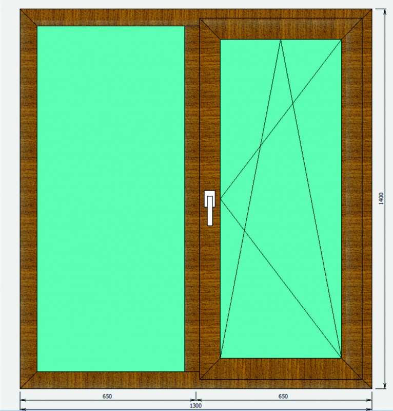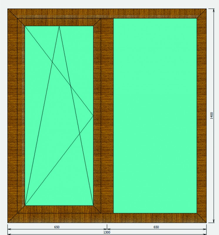 ![]() | 1300х1400 | Цветное окно с фактурой «под дерево», ламинация с двух сторон (с улицы и в помещении). Двухстворчатое, с одной поворотно-откидной створкой, левое. | 24 400 |