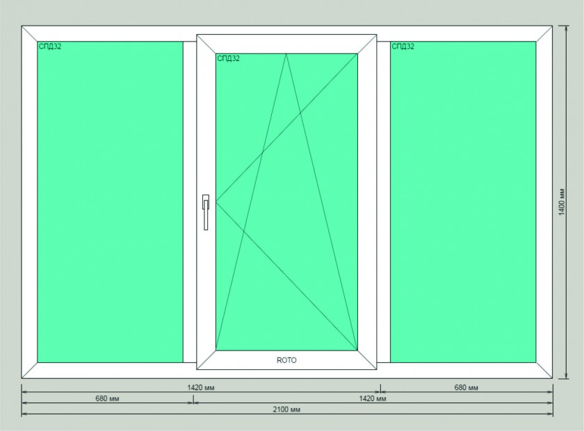 ![]() | 2100х1400 | Окно трехстворчатое, с одной поворотно-откидной створкой, правое. | 18 500 |